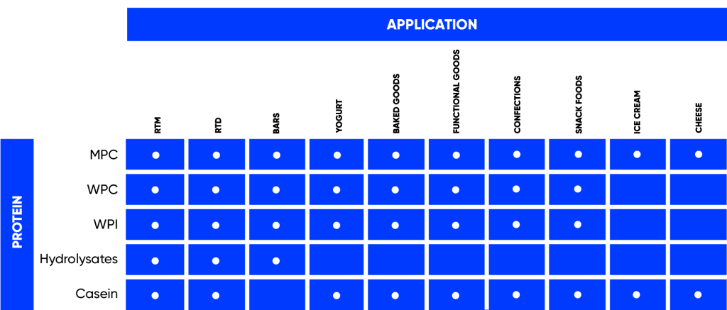 Dairy proteins have long been used in many different applications as they have a long shelf life, can be easily incorporated into products and have a neutral taste. The diversity of applications these proteins can be incorporated into is in part due to the range of ingredients available, many of which have been developed for specific products to meet consumer preferences.